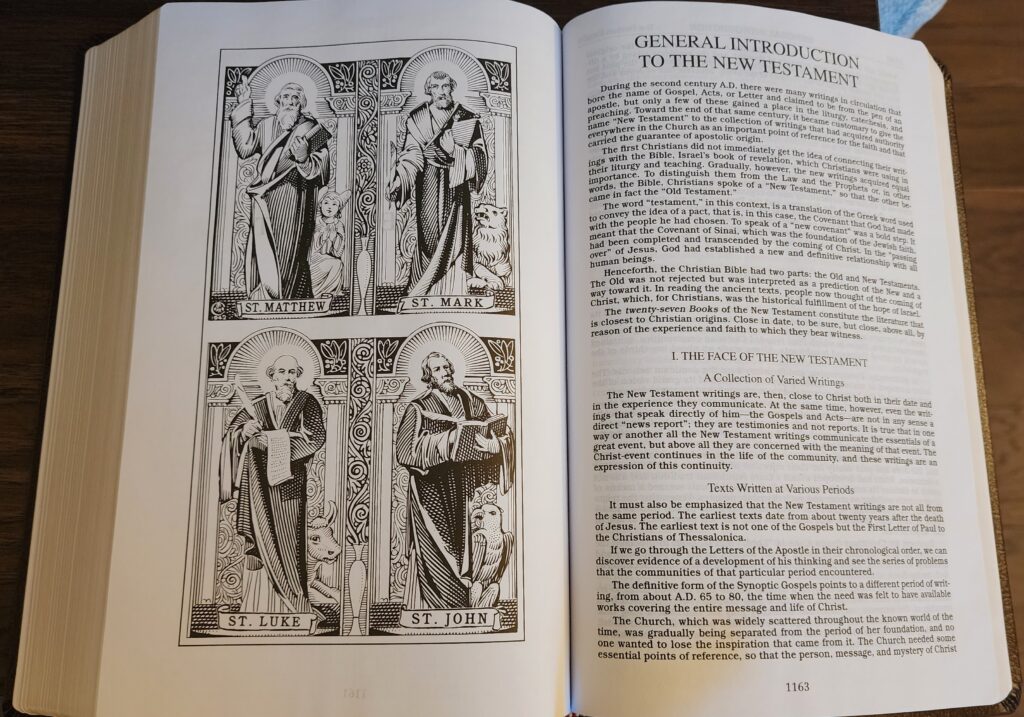 The only two illustrations I’ve found in the Deluxe Gift Bible are a picture of Moses at the beginning of the Bible and a picture of the four evangelists at the beginning of the New Testament: